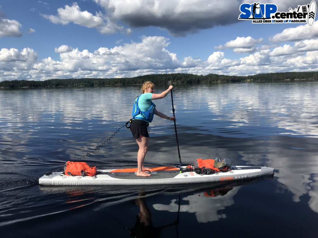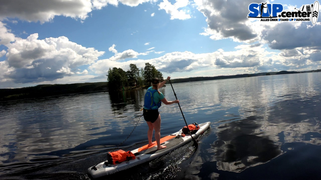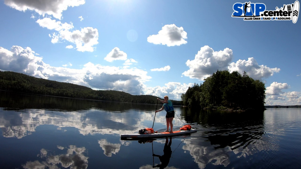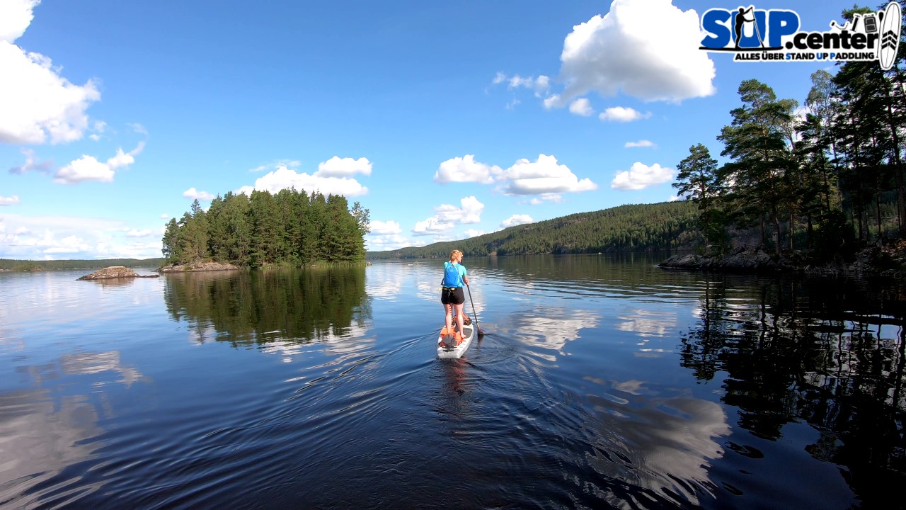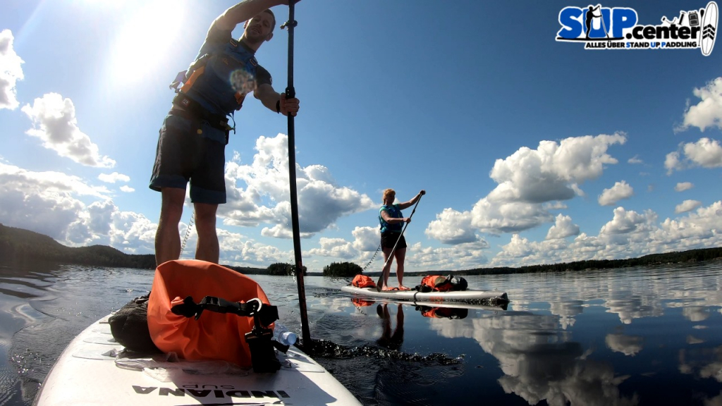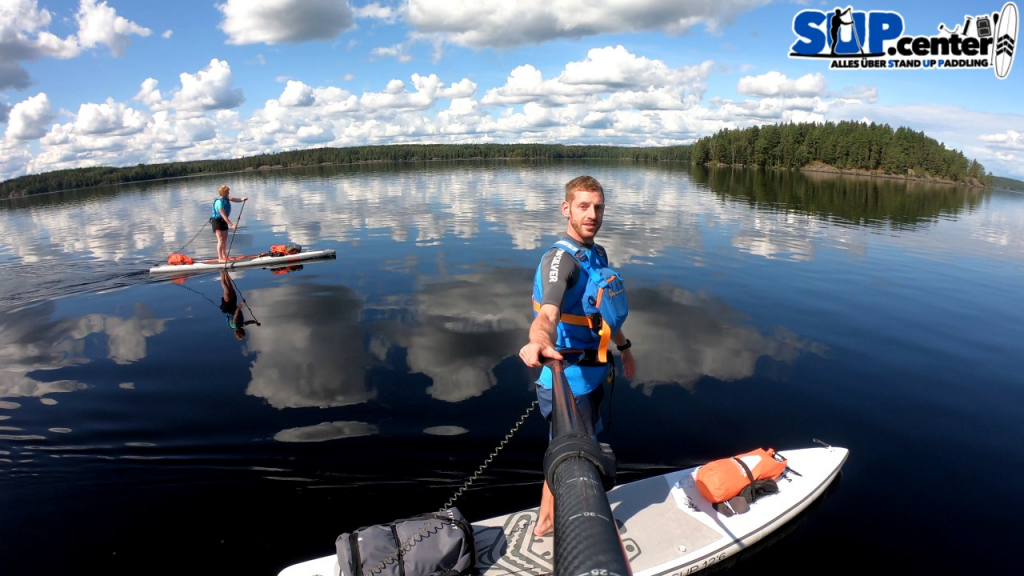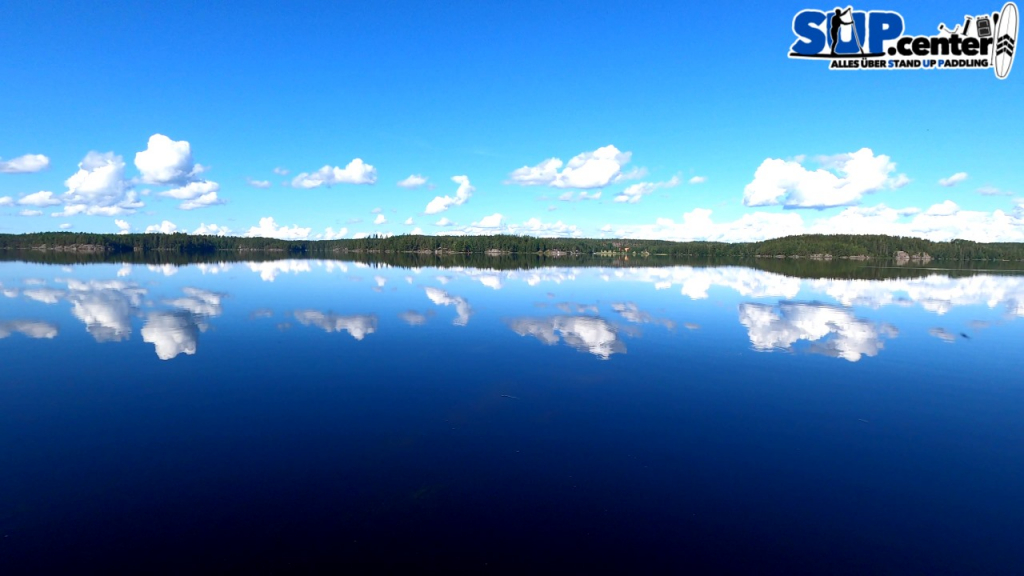 Die großen Seen in Schweden sind natürlich windanfällig. Es kann, vor allem in den Nachmittagsstunden gerne mal ein kräftiger Wind aufziehen. Wer dann die Strecke gegen den Wind paddeln muss, kommt schnell an seine Grenzen. Deshalb unbedingt regelmäßig die Wind-Apps (z.B. Windfinder) benutzen, damit auf dem Wasser keine bösen Überraschungen warten. Morgens war der Himmel oft wolkenfrei. Im Laufe des Vormittags wurden es aber oft immer mehr Wolken und damit verbunden kam dann auch immer mehr Wind auf. Optimalerweise wird die Tour immer mit Rückenwind gepaddelt. Wer allerdings Start- und Ziel am gleichen Ort hat, braucht schon verdammt viel Glück. Hier sollte sich auf etwas Gegenwind eingestellt werden! Wir empfehlen in Schweden unbedingt auch Sicherheitsausrüstung wie Schwimmweste und Leash zu tragen! Außerdem können unter Wasser, gerade in Ufernähe, nicht sichtbare Felsen sein! Das kann beim Paddeln gefährlich werden (Finne kann hängenbleiben). Also immer vorausschauend und vorsichtig auf den Seen in Schweden mit dem SUP unterwegs sein! Wer Wind- und Wetter regelmäßig überprüft und die notwendige Sicherheitsausrüstung dabei hat, braucht sich aber eigentlich keine Sorgen machen!